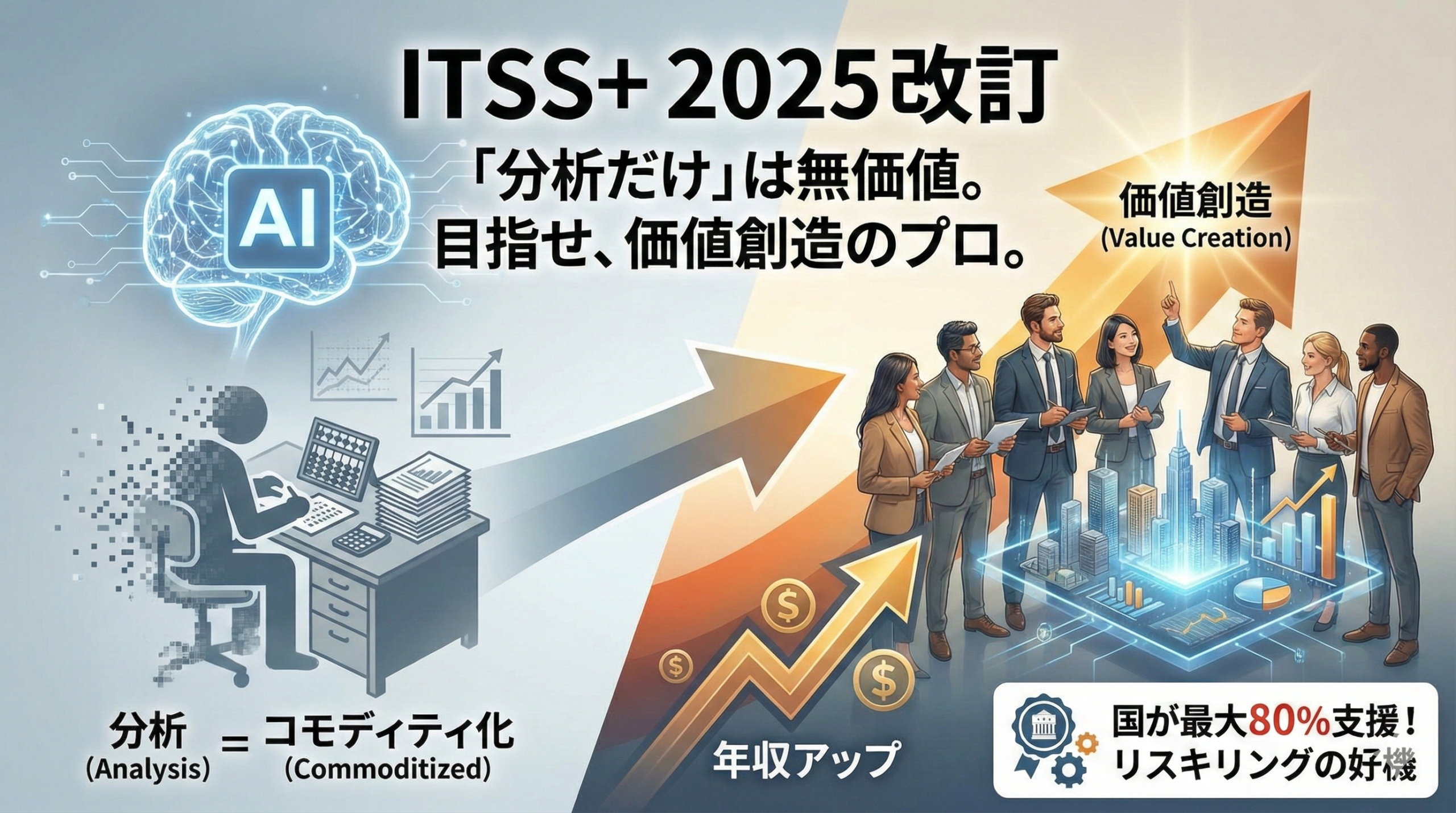 IPA(情報処理推進機構)が2025年12月に発表した最新指針「ITSS+(プラス)データサイエンス領域 2025改訂版」。これは、私たちに一つの衝撃的な事実を突きつけました。